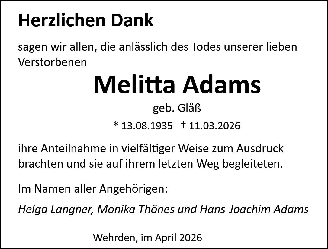 Melitta Adams geb. Gläß